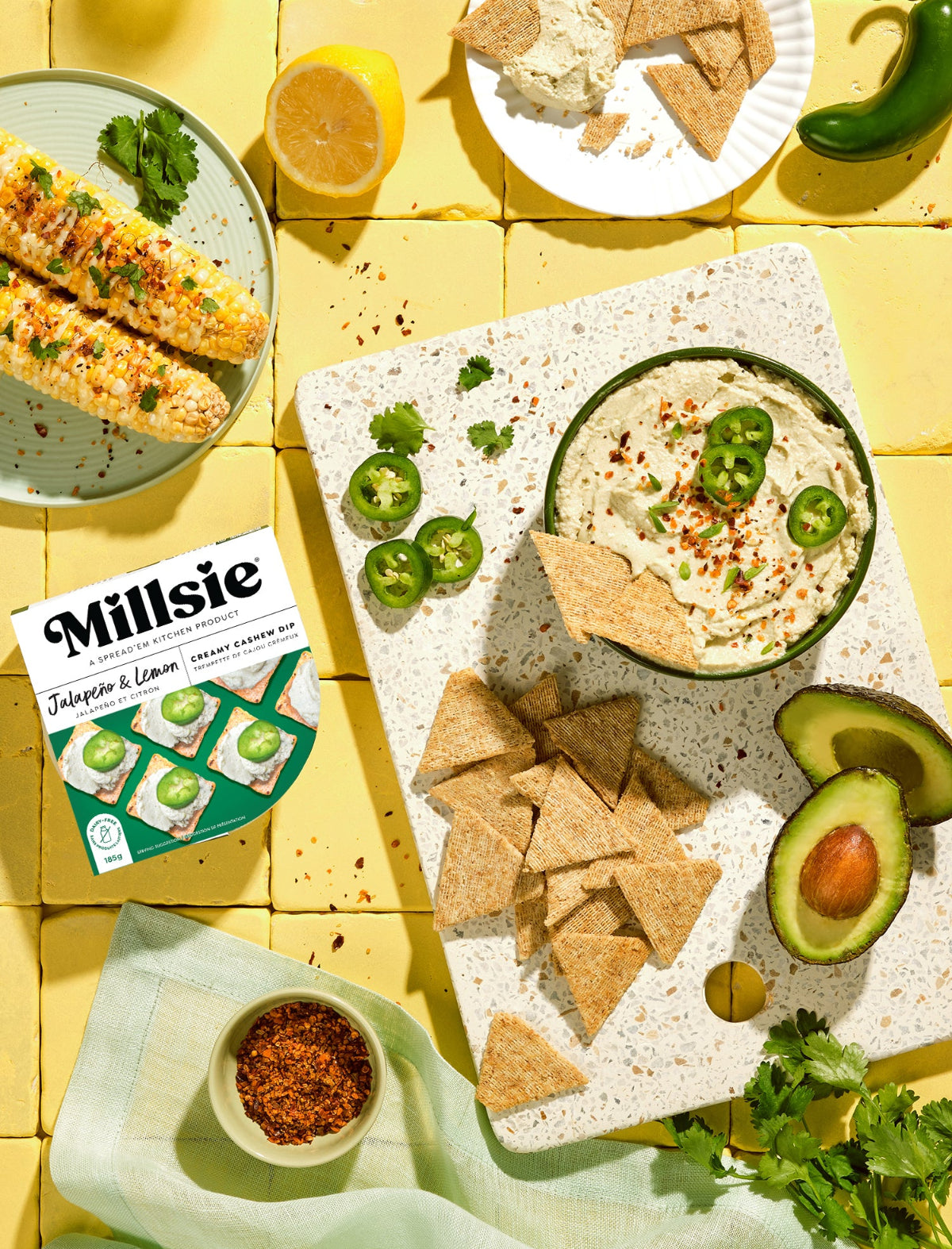 Ingredients: Cashews (tree nuts), Water, Jalapeño peppers, Onion powder, Nutritional yeast, Vinegar, Sea salt, Dried garlic, Chili flakes, Citrus fiber, Bacterial cultures.